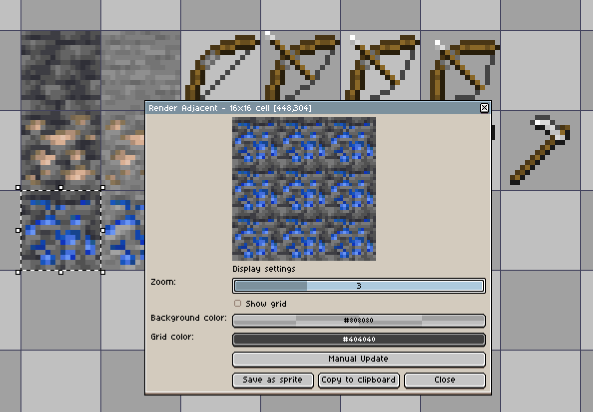This tool is highy inspired by Block Preview extension, but i wanted it to work for a selection, not for a whole sprite.